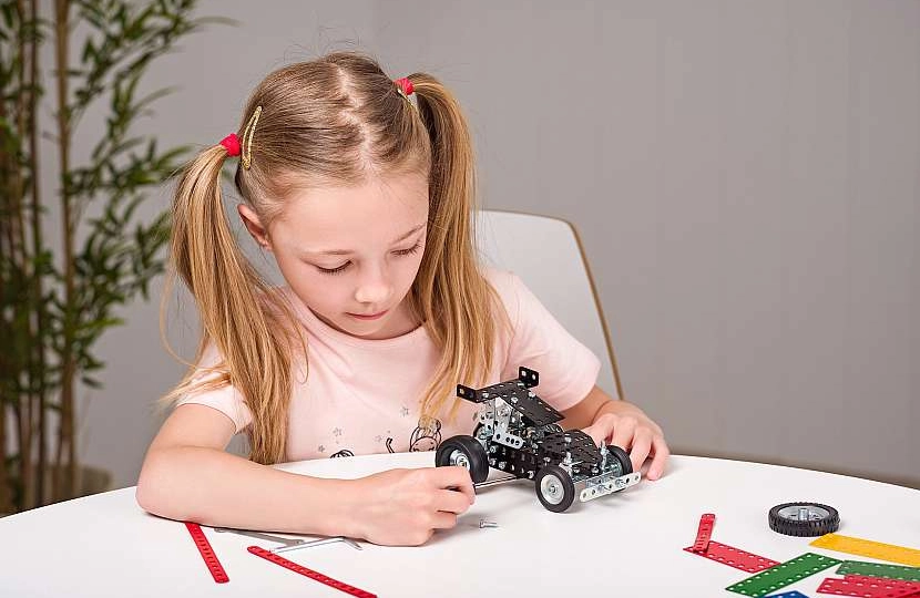 Navíc se dítě učí i reálným dovednostem: manipulace se šroubovákem, čtení návodů, plánování postupu. Merkur podporuje samostatnost i vytrvalost. A když je hotovo, výsledek je o to cennější. Protože není daný šablonou, ale vlastním úsilím.