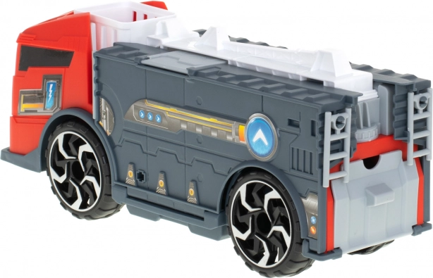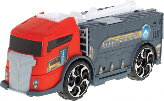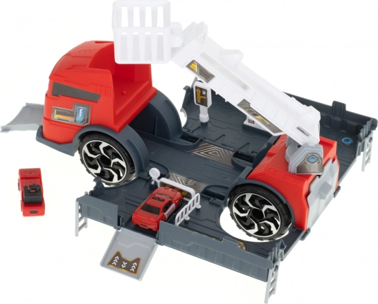 Hasičský kamion funguje jako transportér, který přepraví přiložené modely autíček s pomocí rampy.