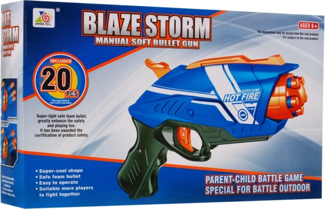 Objevte akční zábavu s dětskou pistolí BLAZE STORM Hot Fire. Tento lehký a odolný blaster v modro‑oranžovém provedení využívá ručně natahovaný pružinový systém, díky kterému děti bezpečně trénují přesnost a koordinaci. Jednoduché přední nabíjení a jednorázový výstřel zajišťují spolehlivý chod bez baterií.