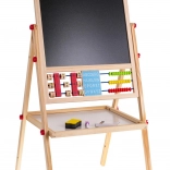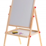 Tato stabilní dřevěná tabule kombinuje kreativní kreslení s chytrým učením. Bílá strana je magnetická pro psaní stíratelným fixem a práci s magnetkami, černá strana je vhodná pro klasické kreslení křídou. Díky nastavitelné výšce se snadno přizpůsobí dětem různého věku a poroste s nimi.