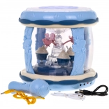 Tato interaktivní hudební kostka rozvíjí rytmus, sluch i jemnou motoriku. Děti mohou bubnovat na horní bubínek, zpívat do mikrofonu a sledovat barevně svítící kolotoč uprostřed kostky. Hudební panel nabízí bohatý výběr melodií, říkanek a příběhů – ideální pro první hudební krůčky.