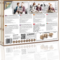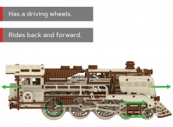 Zažijte radost z precizní práce se dřevem a sledujte, jak se vaše parní lokomotiva promění v živý mechanický model. WOODEN CITY Wooden Express je detailní 3D puzzle z kvalitní březové překližky, které se skládá bez lepidla a nářadí. Po sestavení jej nasadíte na přiložené koleje a díky gumovému pohonu se rozjede dopředu, dozadu i do okruhu.