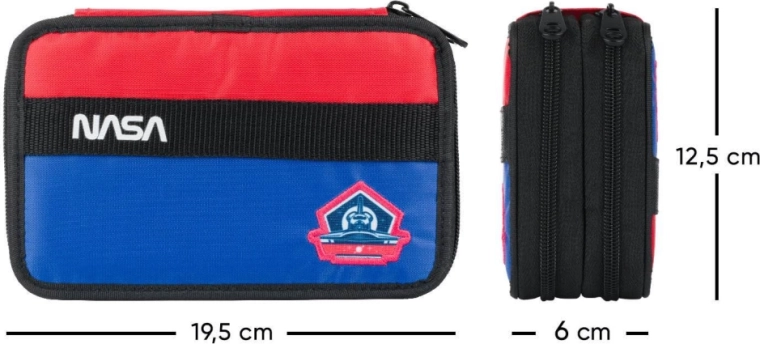 Penál má stylový design s motivem NASA a je vyroben z odolného textilního materiálu, což zaručuje dlouhou životnost a trvanlivost.