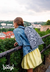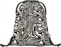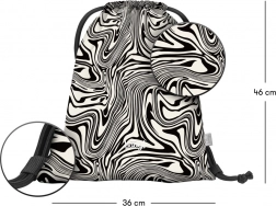 Tento praktický sáček je vyroben z pevného omyvatelného materiálu a jeho elegantní černobílý psychedelický design upoutá pozornost každého. Zdrhování je řešeno pomocí pevných tkanic, které zároveň slouží jako pohodlné popruhy pro nošení na zádech.