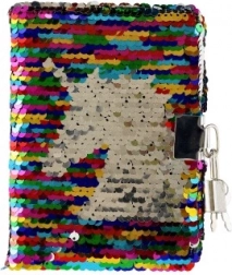 Stylový tajný deník s oboustrannými flitry, které po přejetí mění vzhled a barvy. Pro větší soukromí má deník kovový zámek s klíčky, uvnitř jsou čisté, nelinkované stránky pro psaní i kreslení. Kompaktní rozměry 11 × 15 × 2 cm z něj dělají ideální doplněk do školy i na cesty. Dodáváme mix motivů a barev dle skladové dostupnosti.