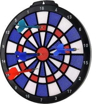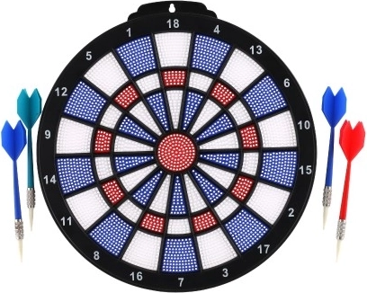 Užijte si klasickou zábavu se šipkami v bezpečném provedení pro děti i dospělé. Tento plastový terč s barevně členěnými poli a čitelným značením sektorů nabízí skvělou kombinaci hry a tréninku přesnosti. Čtyři lehké šipky s vyměnitelnými plastovými hroty jsou šetrné k terči i k okolí.