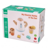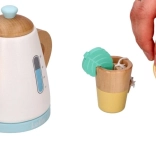 Zapojte se do hry na čajový dýchánek s dřevěným čajovým setem, zahrnující konvici, hrníčky a příslušenství jako plátky citronu a čajové sáčky.