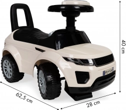 Stylové odrážedlo ve tvaru auta pro děti od 12 měsíců podporuje první krůčky, rovnováhu a koordinaci. Nabízí multimediální volant se zvuky, bezpečnou a stabilní konstrukci, úložný prostor pod sedadlem a ochranné opěrky proti převrácení. Maximální nosnost 27 kg, certifikace CE a EN71.