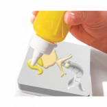 Stačí vybrat formu, nakapat barvy, případně dozdobit třpytkami a ponořit do vody – během okamžiku vznikne hotová figurka připravená ke hraní i vystavení. Sada je ideální pro rozvoj kreativity, trpělivosti a jemné motoriky.