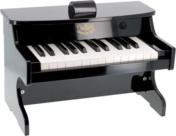Stylové dětské elektronické piano VILAC v černé barvě potěší malé muzikanty od 3 let. Nabízí 18 kláves, přiloženou partituru (10 stran), odolné dřevěné zpracování a praktické automatické vypnutí. Napájení je na baterie, které nejsou součástí balení.