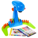 Dětský projektor na kreslení je ideální volbou pro malé umělce. Obsahuje 32 motivy na 4 kotoučcích, které snadno promítnete na papír a obkreslíte přiloženými fixy. Projektor má nastavitelnou výšku a je velmi snadno ovladatelný – stačí vložit vybraný kotouč a kresby se objeví na sledovaném místě.