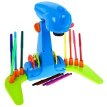 Součástí projektoru jsou úložné pohárky pro fixy a kotouče, což umožňuje snadnou organizaci a úklid. Tento zábavný nástroj podporuje kreativitu, zlepšuje jemnou motoriku a posiluje dětskou fantazii. Projektor je skládací, což šetří prostor.