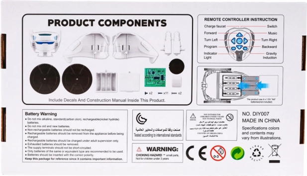 Obsah balení zahrnuje všechny potřebné části: robot má velikost přibližně 17 cm x 16 cm x 12,5 cm. Balíček o rozměrech 30 cm x 17 cm x 7,5 cm obsahuje také podrobný návod k sestavení. Je to skvělý způsob, jak rozvíjet dovednosti dětí v oblasti elektroniky a robotiky.