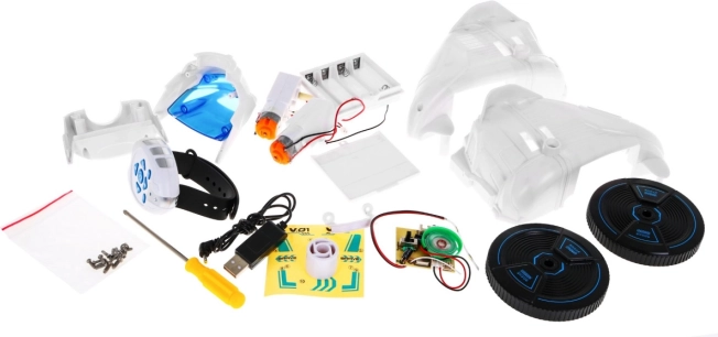 Sada obsahuje všechny potřebné součástky pro sestavení robota, a jednoduchý návod pro hladký průběh montáže.