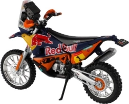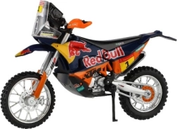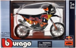 Model závodní motorky BBURAGO v měřítku 1:18 věrně zobrazuje design RED BULL KTM z Rally Dakar 2019 – včetně výrazného oranžovo-modrého lakování, log a závodních prvků. Díky kombinaci kovových a plastových dílů působí robustně a zároveň si zachovává precizní zpracování.