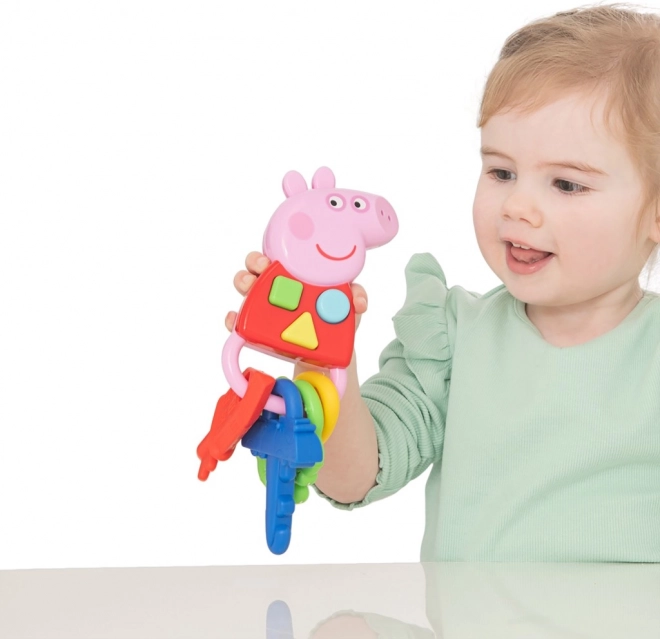 Objevte svět Prasátka Peppa s těmito zábavnými klíčky! Každé stisknutí tlačítka přinese světelné a zvukové efekty, které dětem poskytnou hodiny radosti. Barevné klíče jsou navrženy tak, aby malé děti snadno mohly držet díky různě tvarovaným úchytům.