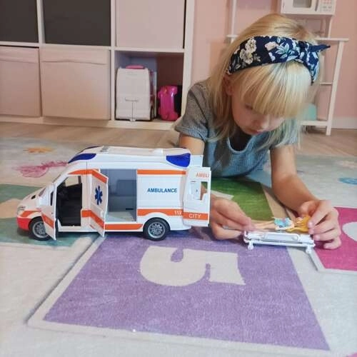 Realistická dětská sanitka pro malé záchranáře nabízí světelné a zvukové efekty, otevírací dveře ze všech stran a skládací nosítka v balení. Odolné plastové provedení, ideální pro kreativní a vzdělávací hru inspirovanou skutečnou záchrannou službou.