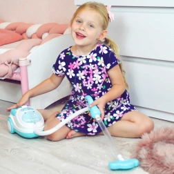 Tento modro-bílý dětský vysavač věrně napodobuje skutečný spotřebič – po zapnutí svítí, vydává realistické zvuky a díky funkci sání zvládne nasát i přiložené polystyrenové kuličky. Je skvělý pro role-play, podporuje zodpovědnost a hravou formou učí děti udržovat pořádek.