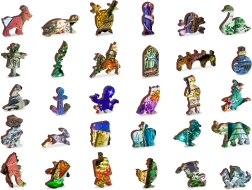 Speciálně tvarované kusy ve tvaru zvířat, postav a staveb dodají skládání osobitost a nový rozměr zábavy.