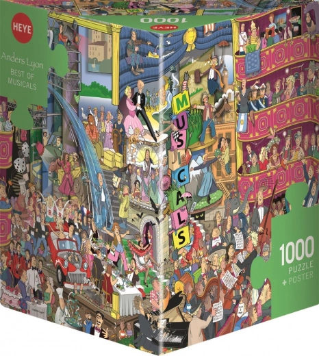 Objevte kouzlo muzikálů v jedinečném puzzle od značky HEYE. Ilustrace od karikaturisty Lyon je plná detailů a humoru, které vás budou bavit při každém kroku skládání. Díky přiloženému plakátu je orientace snadná a skládání ještě příjemnější.