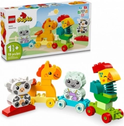 LEGO DUPLO zvířecí vláček potěší všechny malé milovníky zvířat a vozidel. Děti postaví kohouta, koně, ovečku a kravičku, posadí je do barevně sladěných vagónků a vydají se na dobrodružnou jízdu. Díky velkým kostkám se set snadno skládá a podporuje učení hrou.