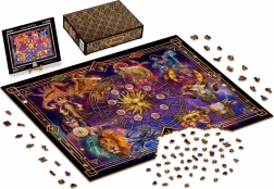 Dřevěné puzzle WOODEN CITY Zvěrokruh přináší mimořádně zábavné a estetické skládání. Díky speciálně tvarovaným dílkům s laserovými detaily vzniká fascinující mozaika, kterou si užijí milovníci netradičních puzzlí i sběratelé. Oboustranné provedení umožňuje skládat buď podle barevného motivu na líci, nebo podle tvarů s opakujícím se vzorem na rubu.