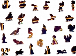 Každý dílek je precizně vyřezán z pevné HDF desky o tloušťce 3–4 mm, což zajišťuje odolnost, přesnost a hladké hrany bez třísek. Část dílků je navržena jako samostatně stojící figurky. I přes „menší“ počet dílků je díky jejich rozmanitým tvarům skládání náročnější a přináší delší a intenzivnější zábavu.