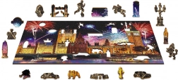 Přineste si kousek Londýna domů s fascinujícím dřevěným puzzle Noční Londýn 2v1. Tato skládačka obsahuje celkem 150 dílků, z nichž 30 je unikátně tvarovaných, zobrazujících ikonické stavby a symboly hlavního města Velké Británie. Při skládání se připravte na vyšší obtížnost díky různorodě tvarovaným dílkům, které představují výzvu i pro zkušené skládáče.