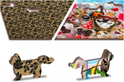 Každé puzzle má obrázek na lícové straně a tvarový vzor na rubu, což zajišťuje dvojnásobnou možnost skládání.