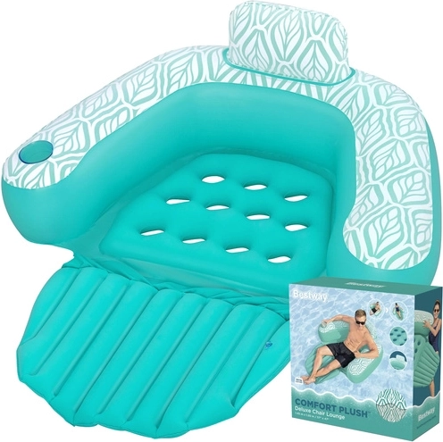 Užijte si léto naplno s nafukovacím křeslem do vody Bestway Deluxe Comfort Plush. Nabízí měkký sametový povrch Comfort Plus, ergonomické opěradlo s polštářkem a skládací podnožku pro extra pohodlí. Díky držáku na nápoj, 3 vzduchovým komorám a bezpečnostním ventilům je křeslo stabilní, praktické a ideální pro bazén, jezero i moře.
