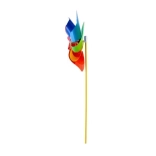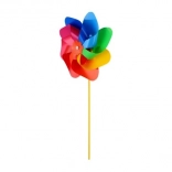 Větrník zaujme svými živými barvami červené, modré, zelené a žluté, které přitahují pozornost a zkrášlují každé místo.