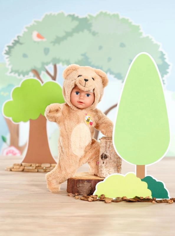 Oblékněte svou panenku do roztomilého medvídkového pyžamka a objevujte svět fantazie. Overal z jemného plyšového materiálu je pohodlný, příjemný na dotek a ideální pro mazlení i hraní na převlékání. Kapuce s oušky a roztomilou výšivkou dodává oblečku neodolatelný vzhled.