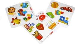 Karty s obrázky zvířat a předmětů pomáhají dětem rozpoznávat různé tvary a rozvíjejí jejich zrakovou paměť.