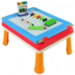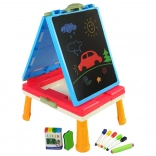 Tabule má dvě povrchy - bílou pro zmazatelné fixy a černou pro křídové kreslení. Součástí je sada fixů v pěti barvách a 12 kusů křídy. Navíc získáte kostku a figurky pro deskové hry jako jsou Člověče, nezlob se a Hadi a žebříky.