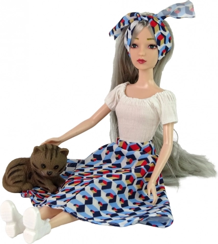 Panenka EMILY se šedými vlasy s koťátkem a houpačkou