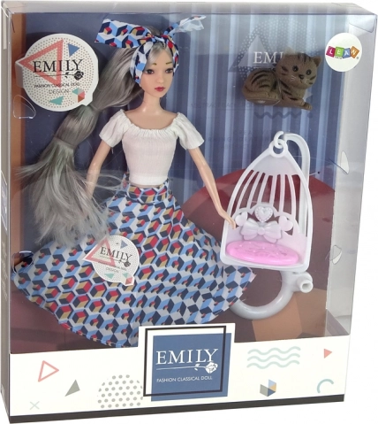 Roztomilá panenka EMILY potěší každé dítě svými dlouhými šedými vlasy, stylovým outfitem a milým doplňkem – koťátkem a houpačkou. Skvělá pro kreativní a módní hry, podporuje fantazii a jemnou motoriku. Vhodné pro děti od 3 let, s certifikací CE a shodou s EN71.