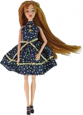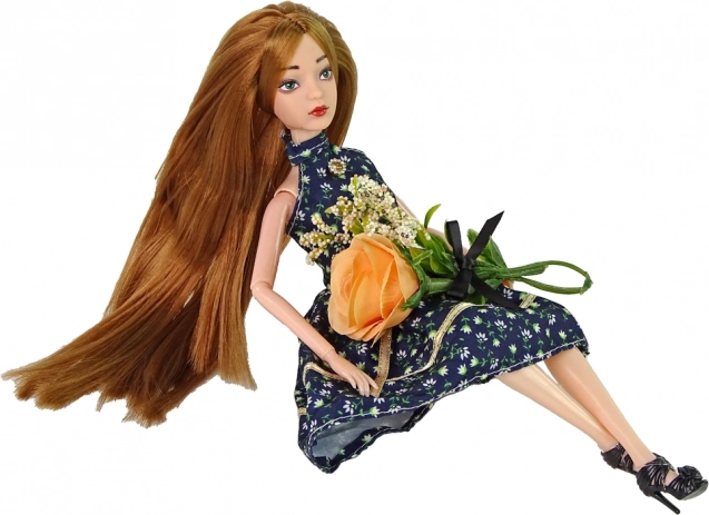 Stylová panenka Emily s dlouhými hnědorudými vlasy a modrýma očima okouzlí malé milovnice módy. Má kloubové končetiny pro realistické pózování, nosí tmavé šaty s květinovým vzorem a lodičky na podpatku. Součástí je i dekorativní růže. Ideální velikost do dětských rukou a skvělé jako dárek.