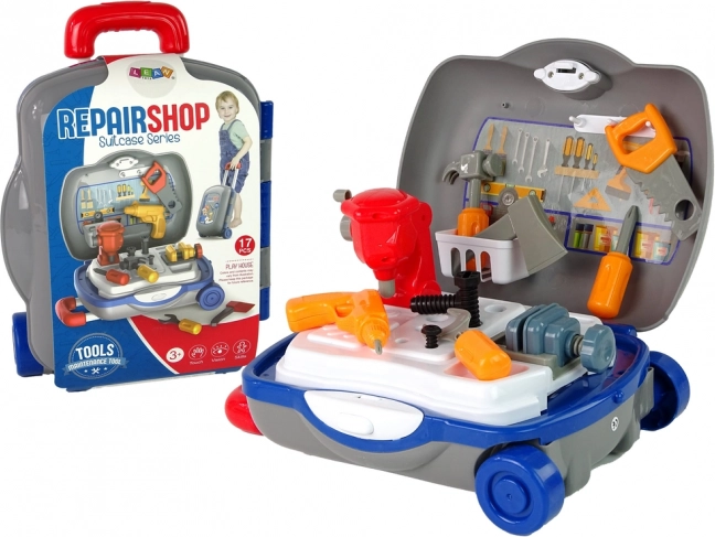 Pojízdný kufřík s nářadím promění každé dítě v malého opraváře. Sada obsahuje bezpečné plastové nářadí a pracovní plochu pro hraní doma i na cestách. 17dílná sada, kufřík na kolečkách s vysouvací rukojetí a snadné ukládání podporují kreativitu a jemnou motoriku. Vhodné od 3 let, splňuje EN71 a CE.
