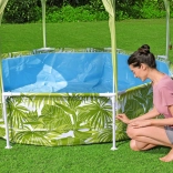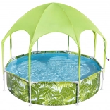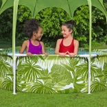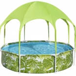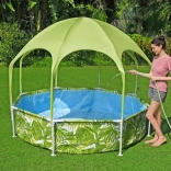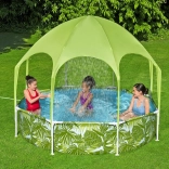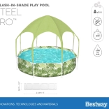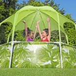 Bazén Bestway SPLASH-IN-SHADE je navržen tak, aby děti motivoval k pohybu a bezpečné vodní zábavě na zahradě. Přístřešek s integrovaným natryskem poskytuje stín a ochlazení; stačí připojit zahradní hadici a zábava může začít. Barevná letní grafika potěší malé plavce a pevná konstrukce zajistí stabilitu po celé léto.