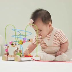 Dřevěná tahací hračka s korálkovým labyrintem