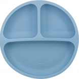 Tento silikonový talířek je designován s populárním motivem Mickeyho Mouse, který děti milují. S třemi oddělenými přihrádkami je ideální pro oddělení různých potravin, což usnadňuje zdravou výživu a zabraňuje míchání chutí.