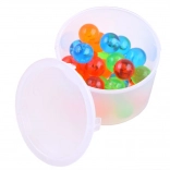 1 základna (ruleta), 28 kuliček ve čtyřech barvách, nádoba na kuličky