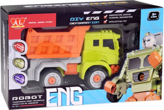 Objevte zábavu 2v1: auto i robot v jednom! Tento barevný stavební vůz se během chvilky promění v mechanického robota se skutečně pohyblivými rukama a nohama. Díky odšroubovatelným dílům (kola, kapota, korba) a otevíratelné sklápěcí korbě si děti procvičí zručnost, logiku a kreativitu. Součástí je šroubovák a náhradní šroubek.
