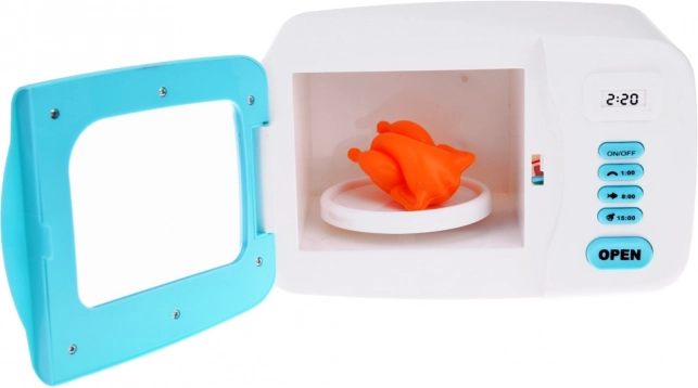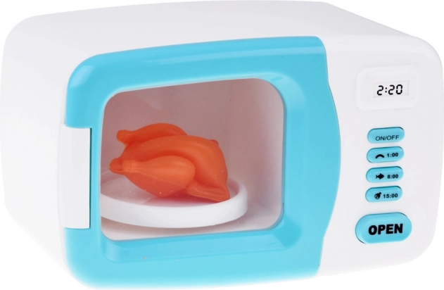 Zábavné hraní napomáhá dětem rozvíjet jemné motorické dovednosti a povědomí o domácích činnostech. Mikrovlnná trouba je vyrobena z plastu v bílo-modré barevné kombinaci a je realistickou replikou kuchyňského spotřebiče.