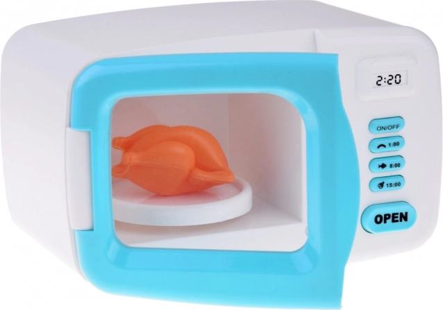 Uvnitř mikrovlnné trouby se nachází plastový model kuřete, který se při zapnutí otáčí na talíři. Interiér trouby je během imitovaného provozu osvětlován červeným světlem, což přidává na autentičnosti zážitku. Tento produkt podporuje dětskou fantazii a podněcuje zájem o vaření a přípravu pokrmů.