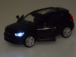 Tento věrný model VOLVO XC40 RECHARGE vyniká kvalitním zpracováním a realistickými detaily. Po otevření dveří uslyšíte zvuk odemknutí, po přitlačení k podložce se spustí start motoru a jeho chod, doplněný o přední a zadní světla. Díky friction power stačí autíčko natáhnout po hladkém povrchu a samo vyrazí vpřed.