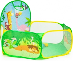 Součástí balení je 50 plastových míčků (Ø 6 cm), které promění stan v zábavný suchý bazének. Vestavěný koš na házení motivuje k pohybu, rozvíjí koordinaci a přesnost. Odolná podlážka je připravena na hraní uvnitř i venku.