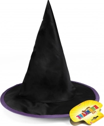 Stylový doplněk pro malé kouzelníky a čarodějky! Tento dětský čarodějnický klobouk ze šusťákoviny zdobí barevný lem a je k dispozici ve 2 barvách. Ideální na karneval, Halloween i školní besídky. Vhodné pro věk 3+.