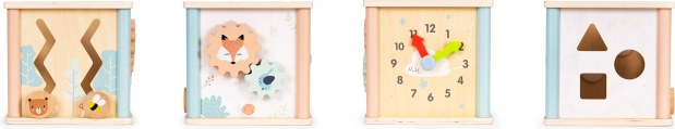 • 4 aktivity v jednom: labyrint, ozubená kola, hodiny, sortér tvarů