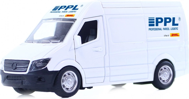 Přidejte k vašemu vozovému parku tento jedinečný model dodávky značky PPL, který dodá vaší sbírce aut nový rozměr. Tento model je detailně zpracován a nabízí atraktivní funkci otevíracích předních a zadních dveří, které umožňují nahlédnout dovnitř. Auto jezdí na zpětný chod, což zaujme malé i velké fanoušky autíček.